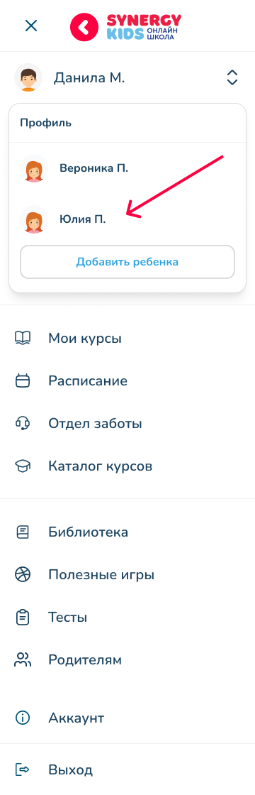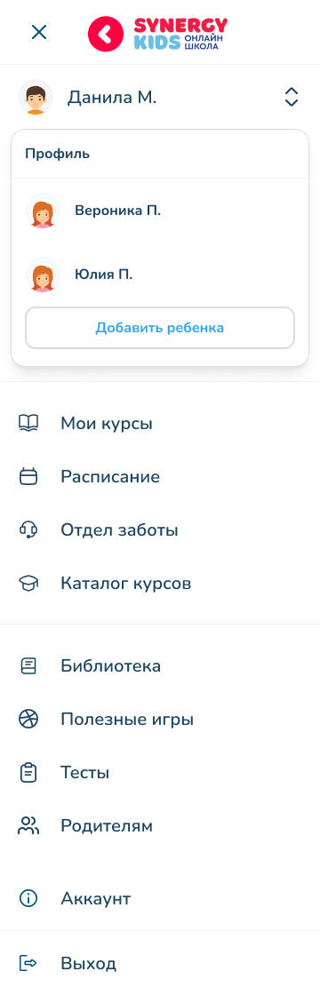 - Войдите в личный кабинет synergykids.ru. Для этого введите свой логин и пароль из письма от Synergy Kids, отправленного вам на почту при регистрации.