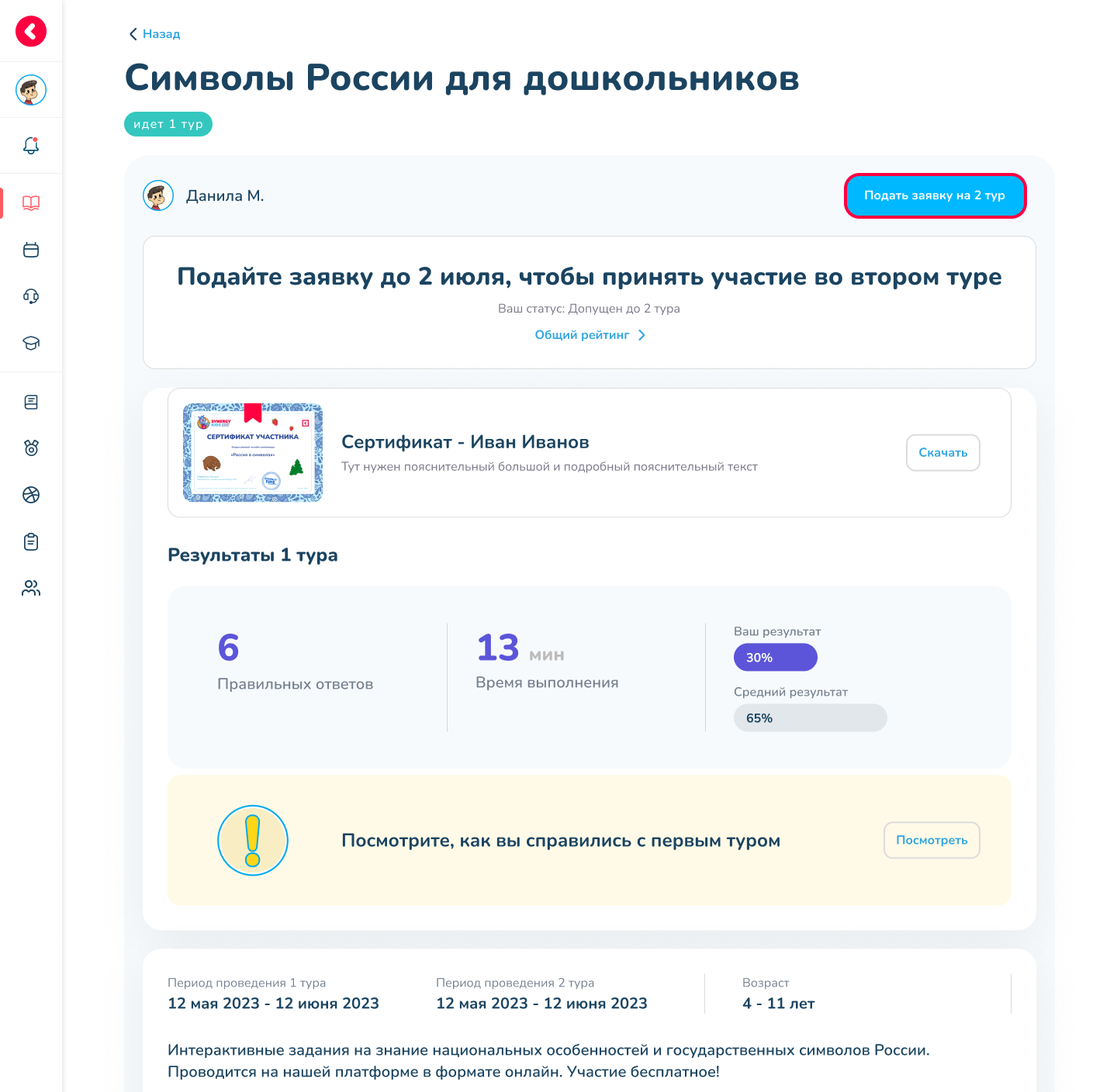 После завершения второго тура платформа автоматически формирует рейтинг участников, комиссия верифицирует результаты и определяет трёх победителей в каждой возрастной категории.